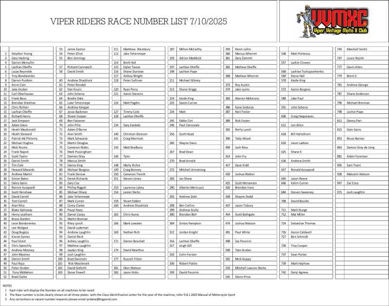 - Check this race number is displayed clearly on the front and both side plates of all your machines you intend to race.